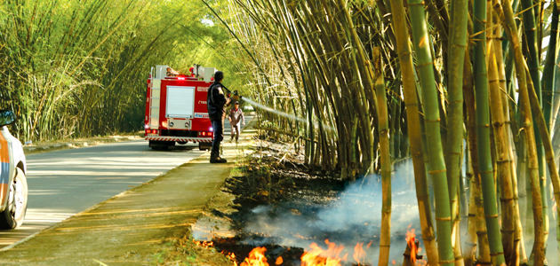 Mais uma vez os bombeiros foram chamados para combater um incêndio no bambuzal da av. Gerino de Souza Filho, que liga o Caji Caixa d’Água ao Jambeiro. A falta de limpeza permanente no trecho facilita a ocorrência.