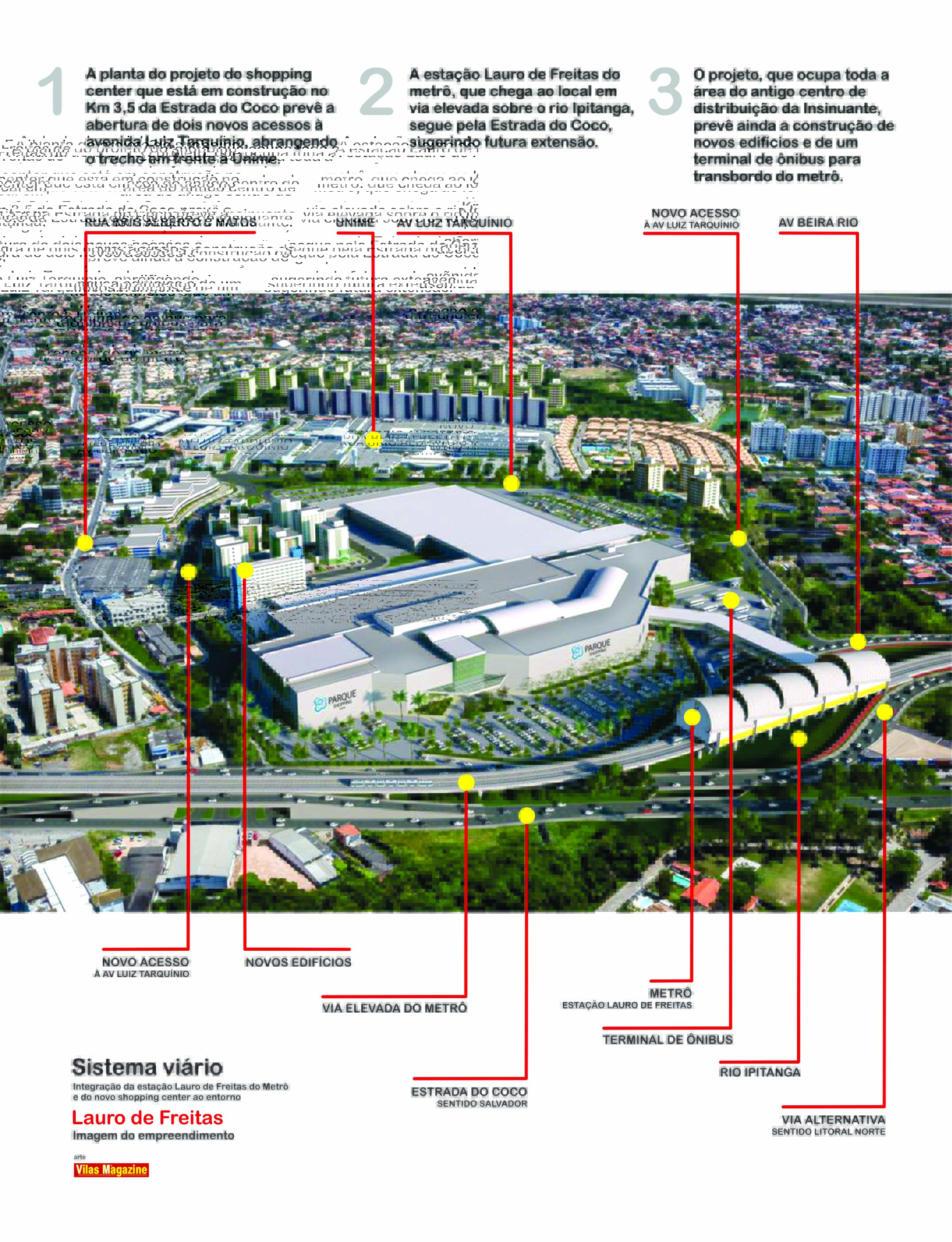 O conjunto tem potencial para multiplicar muitas vezes o tráfego de veículos e pessoas na região. O próprio shopping conta com uma ampla área de lazer e entretenimento, com 12 salas de cinema, parque, praça de alimentação, restaurantes e cafeterias. O novo Centro Administrativo de Lauro de Freitas, que concentrará muitas das secretarias municipais e serviços públicos, está sendo construído na mesma área, contribuindo ainda mais para o aumento do fluxo de veículos e pedestres.