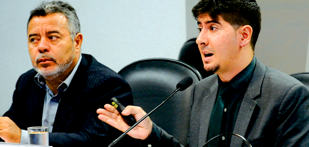 Rodrigo Gebrim (dir) e Geremias dos Santos, presidente da Abraco, na audiência do Senado: um pede denúncias de conteúdo impróprio, o outro quer acesso à propaganda oficial