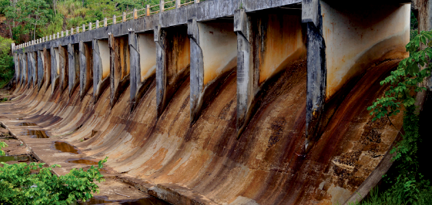 Vertedouro da barragem: calha do rio permanece seca até receber as águas poluídas do Ipitanga