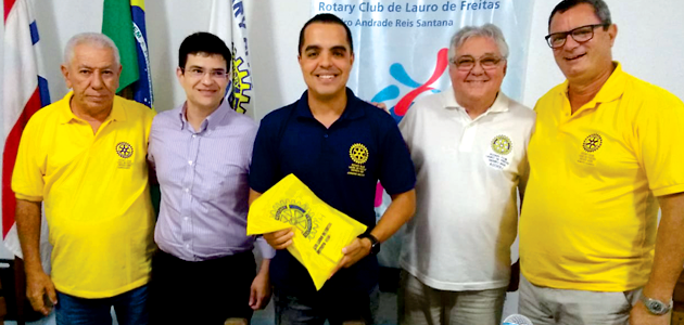 Yan Medeiros, gerente do SENAI em Lauro de Freitas e Eugênia Isabel Cariranha, coordenadora pedagógica da entidade foram recebidos em reunião do Rotary Club Lauro de Freitas, quando dissertaram sobre as ações da entidade no município, destacando a parceria com o clube de serviços. Acima, Yan Medeiros (camisa lilás), com os rotarianos Coriolano Oliveira, o presidente Leandro Santana, o diretor de Protocolo Carlos Accioli Ramos e o secretário Gilberto Almeida (a partir da esq.).