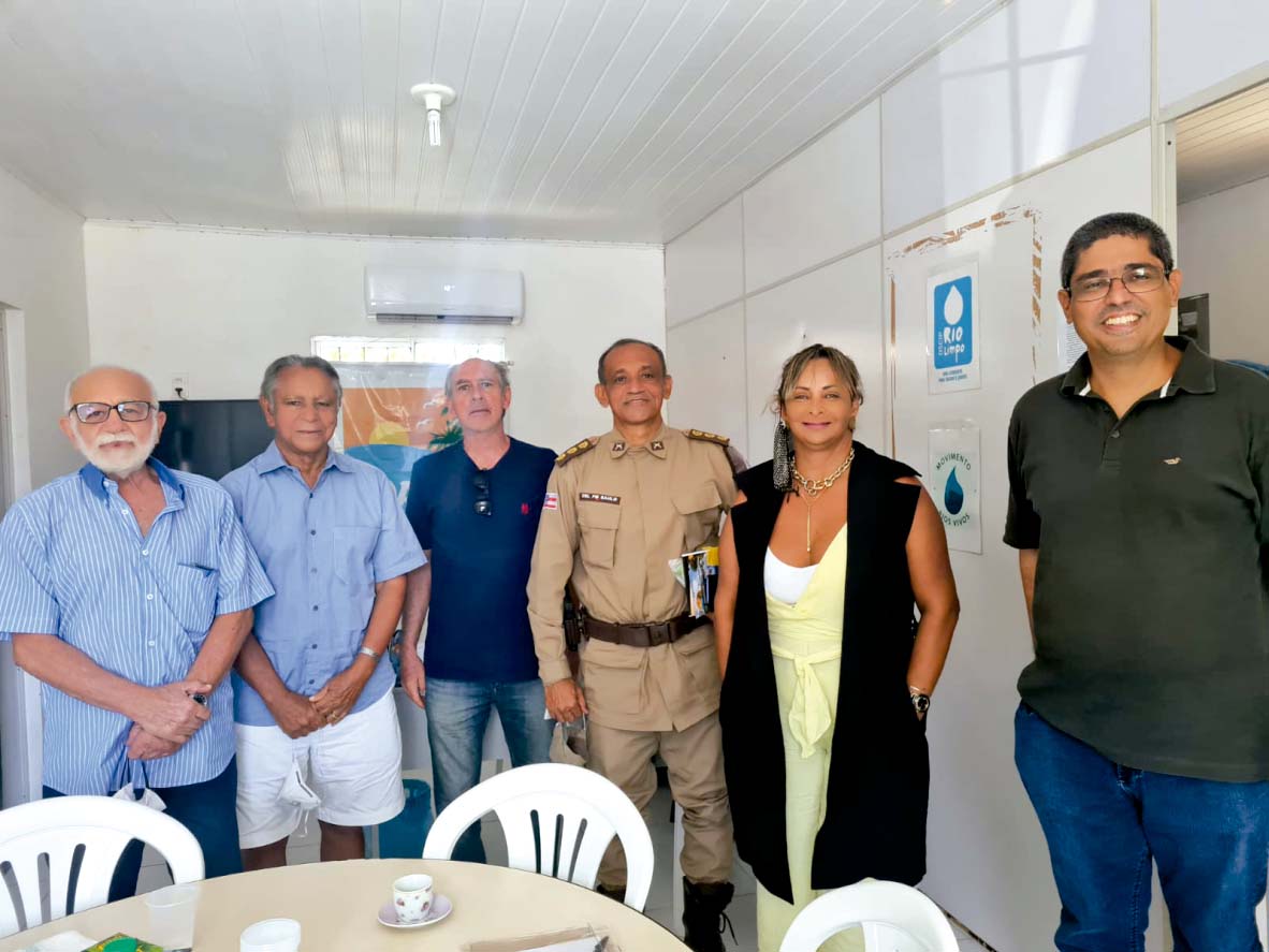 O Comandante de Policiamento da Região Metropolitana de Salvador, Cel. PM Saulo Roberto Costa dos Santos visitou a sede da Salva, em outubro, sendo recepcionado pelo coordenador-geral, Márcio Costa, coordenadores e associados. No encontro foram tratados assuntos de segurança pública e poluição sonora em Vilas do Atlântico. Na foto (a partir da esq.), Jessé Palma (coordenador financeiro), José Rossini (associado), Márcio Costa, Cel. PM Saulo Roberto, Helena Posener (assessora jurídica) e Leonardo Teixeira (associado).